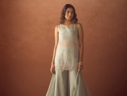 A Soft Petal Palazzo Suit designed with elegant details and flowy fabric, offering a perfect blend of comfort, grace, and modern ethnic charm.