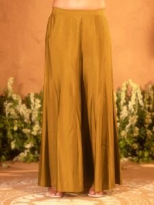 • Flowy bottoms made from viscose Chanderi for comfort and refined structure